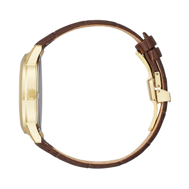 - Esfera color champán con agujas e índices dorados.